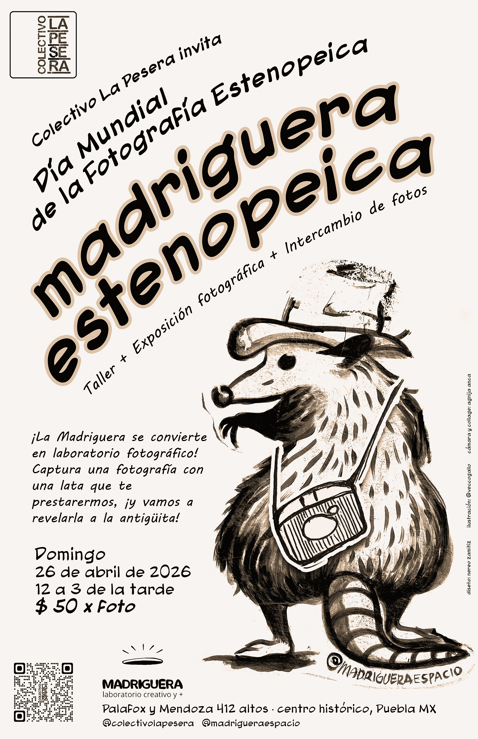 Taller + Exposición fotográfica + Intercambio de fotos ¡La Madriguera se convierte en laboratorio fotográfico!Captura una fotografía con una lata que te prestarermos, ¡y vamos a revelarla a la antigüita! Visita además nuestra exposición de fotografía estenopeica, y trae tus fotos para intercambiar. ¡Y todo para celebrar el Día Mundial de la Fotografía Estenopeica! MADRIGUERA […]